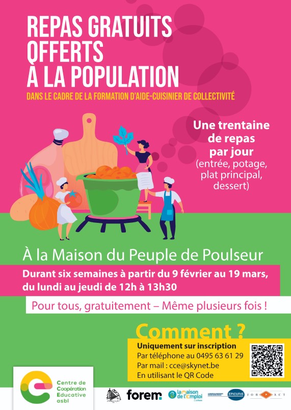 Venez profiter de repas gratuits préparés dans le cadre d’une formation d’aide cuisiner de collectivité.